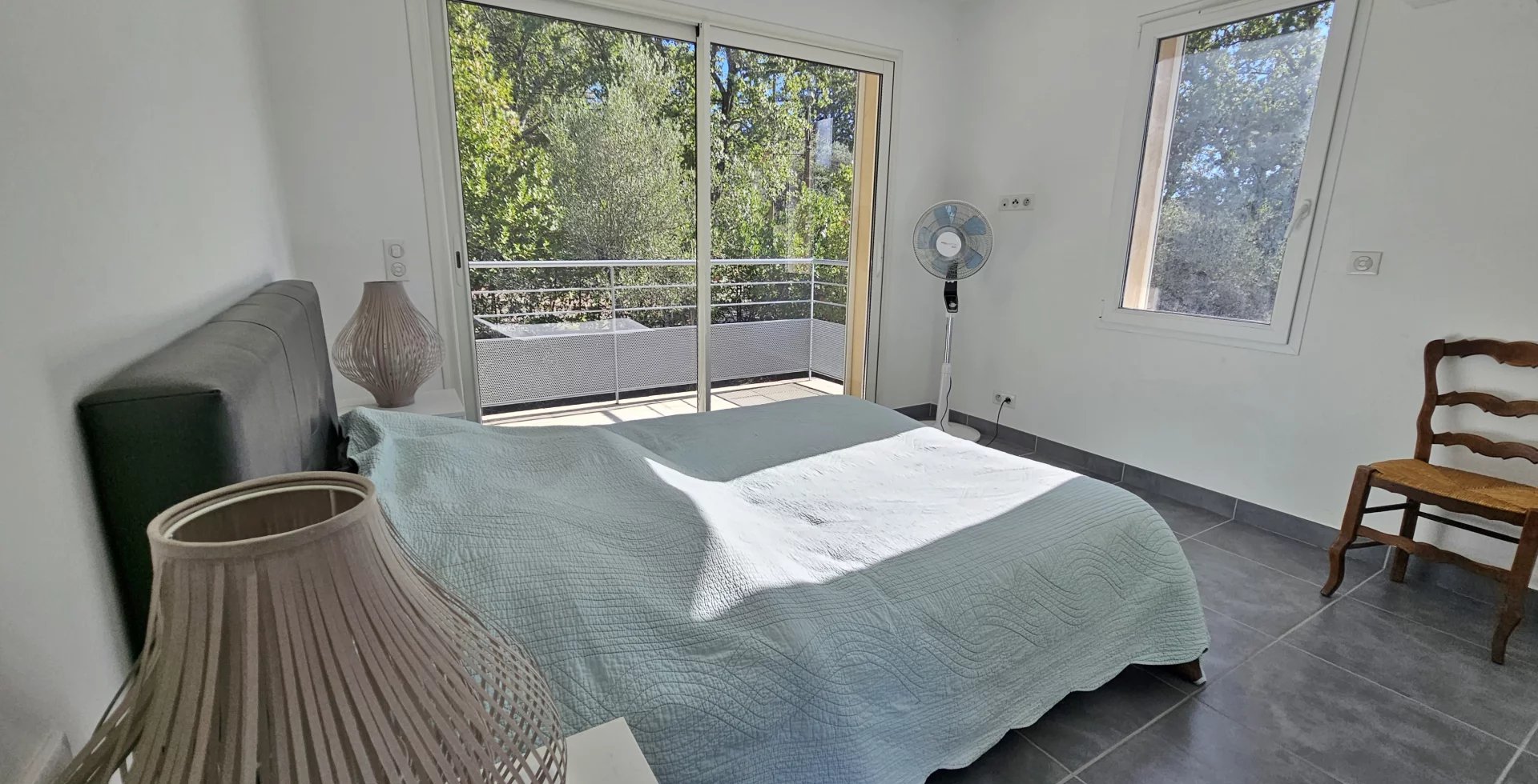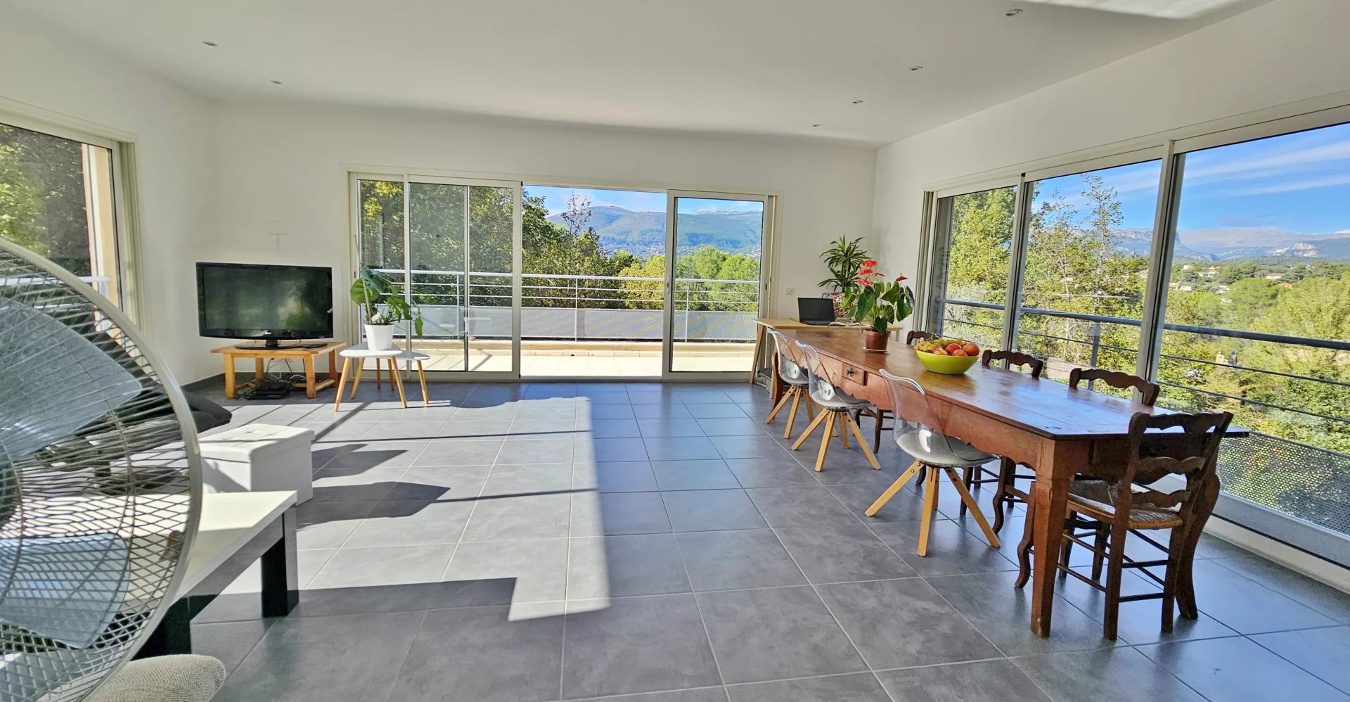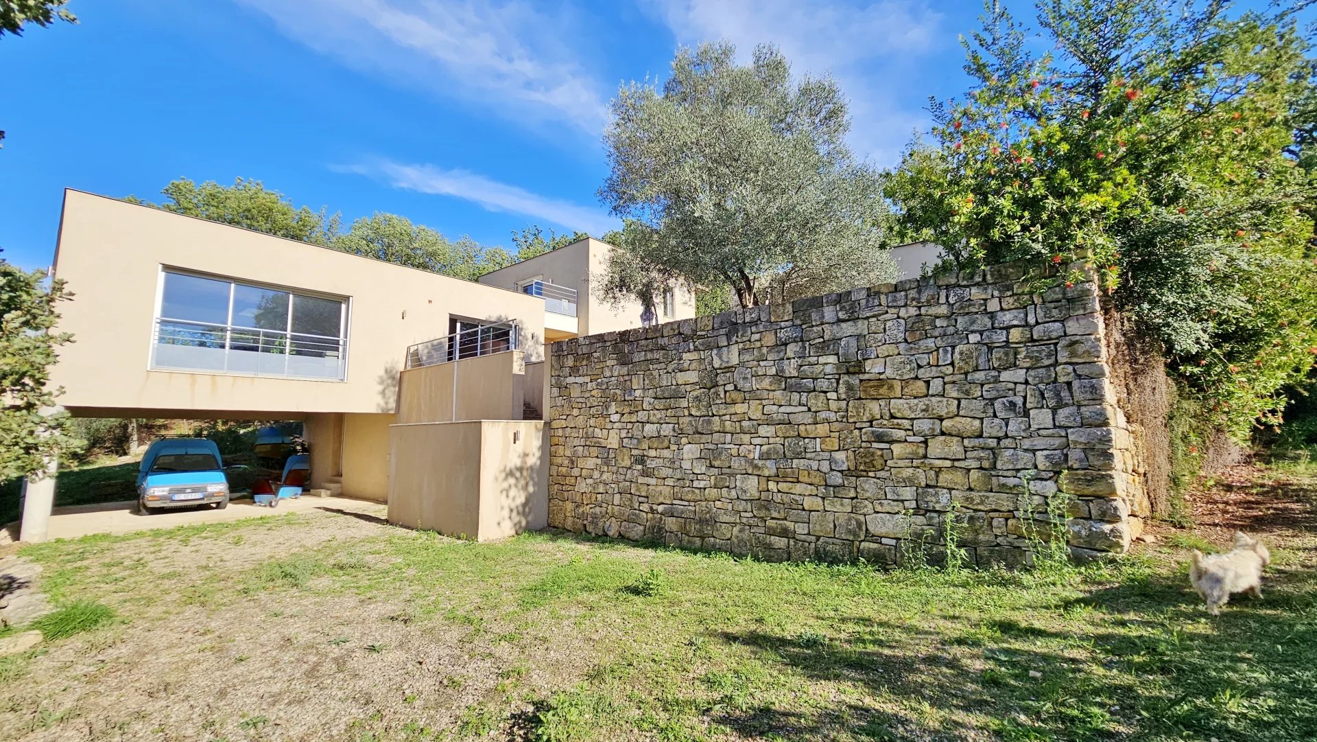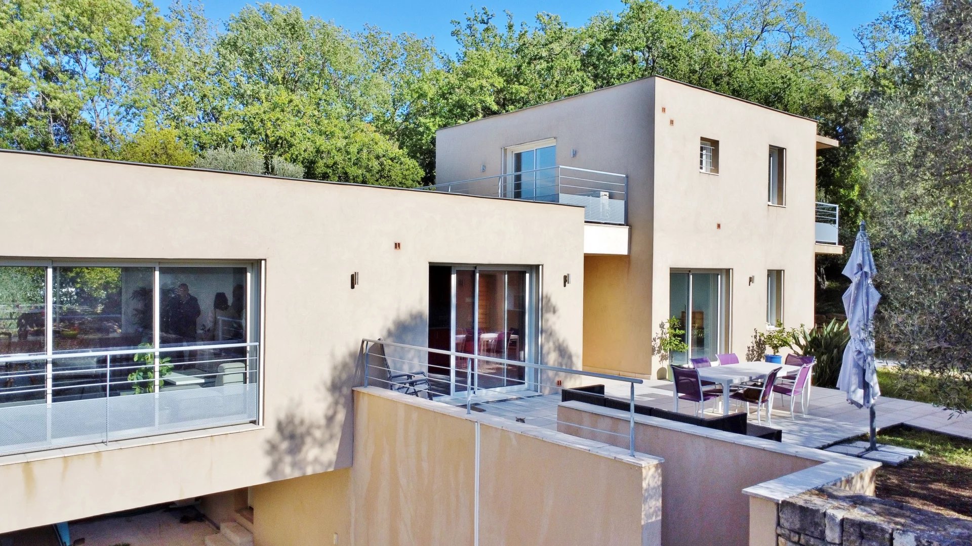 In a highly sought-after area, close to the village yet in absolute peace and quiet, come and discover this beautiful contemporary villa set in around 2000m2 of land with panoramic views over the surrounding countryside.