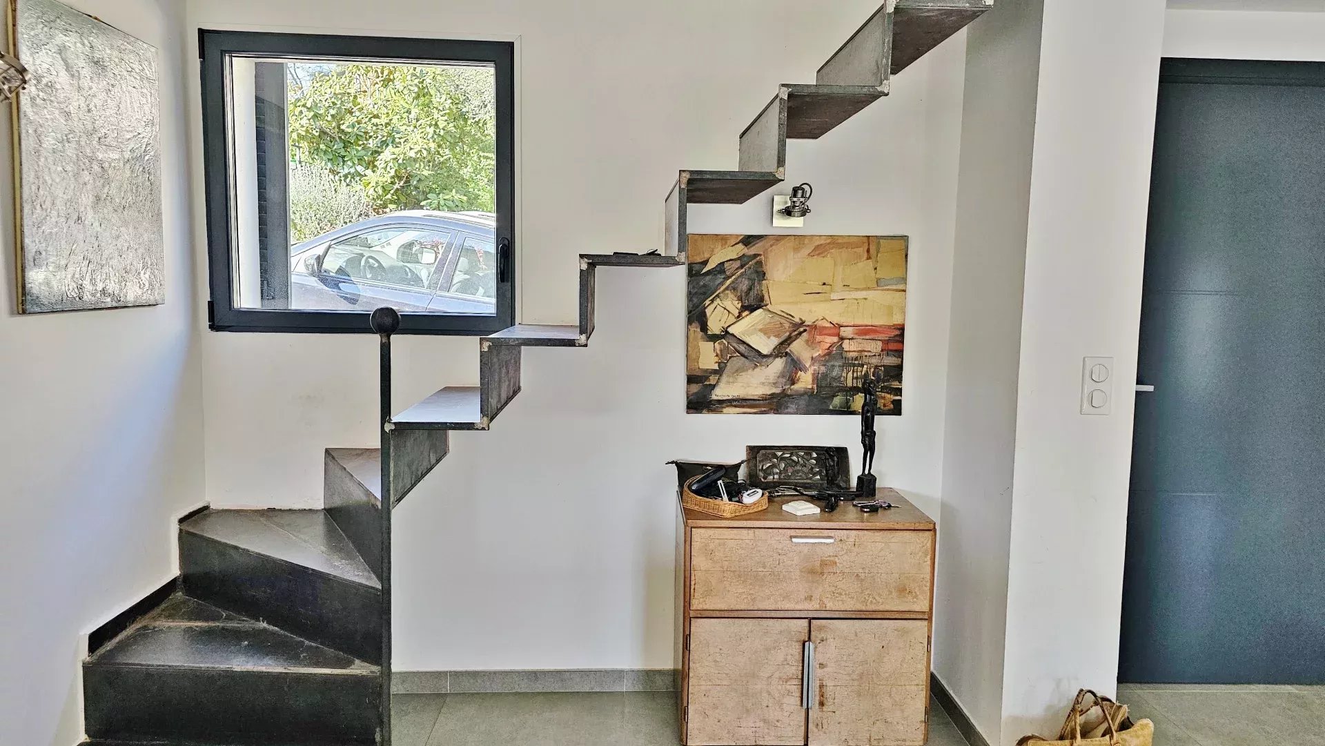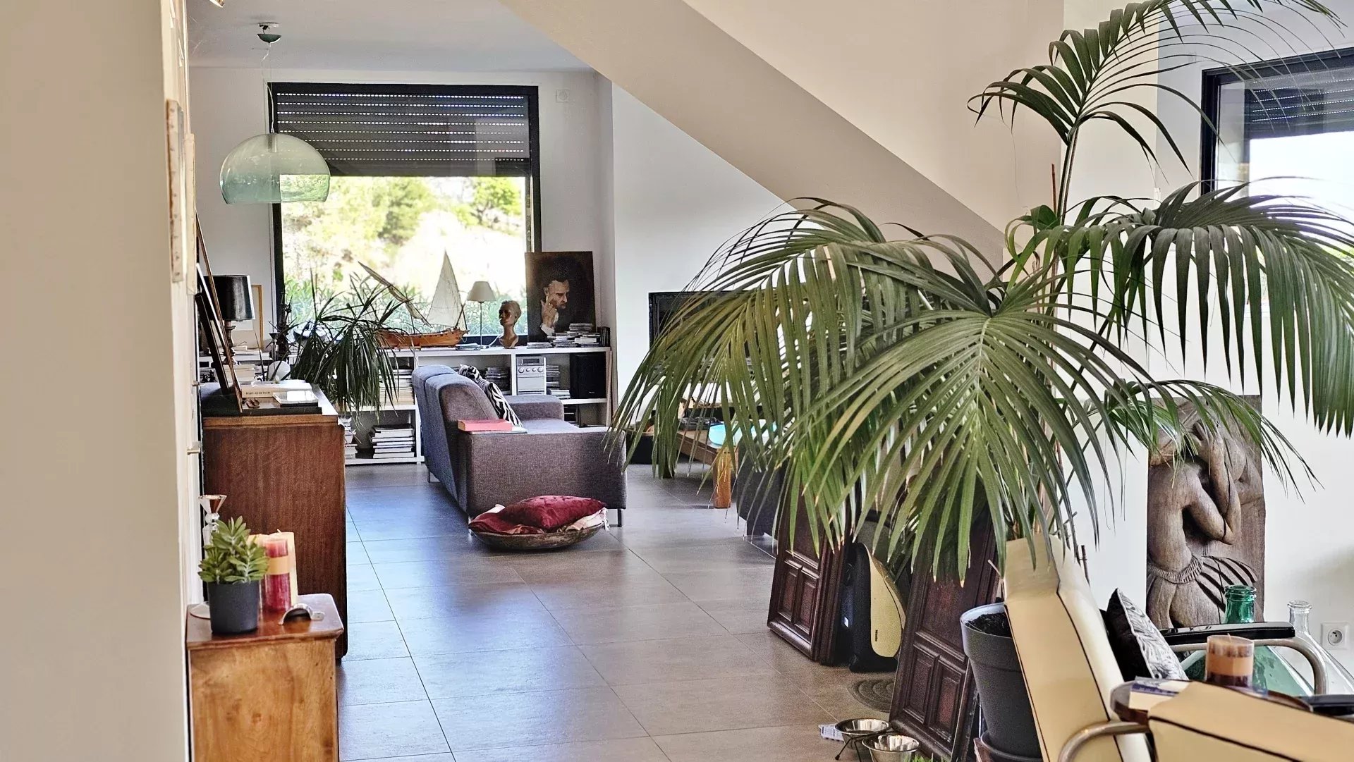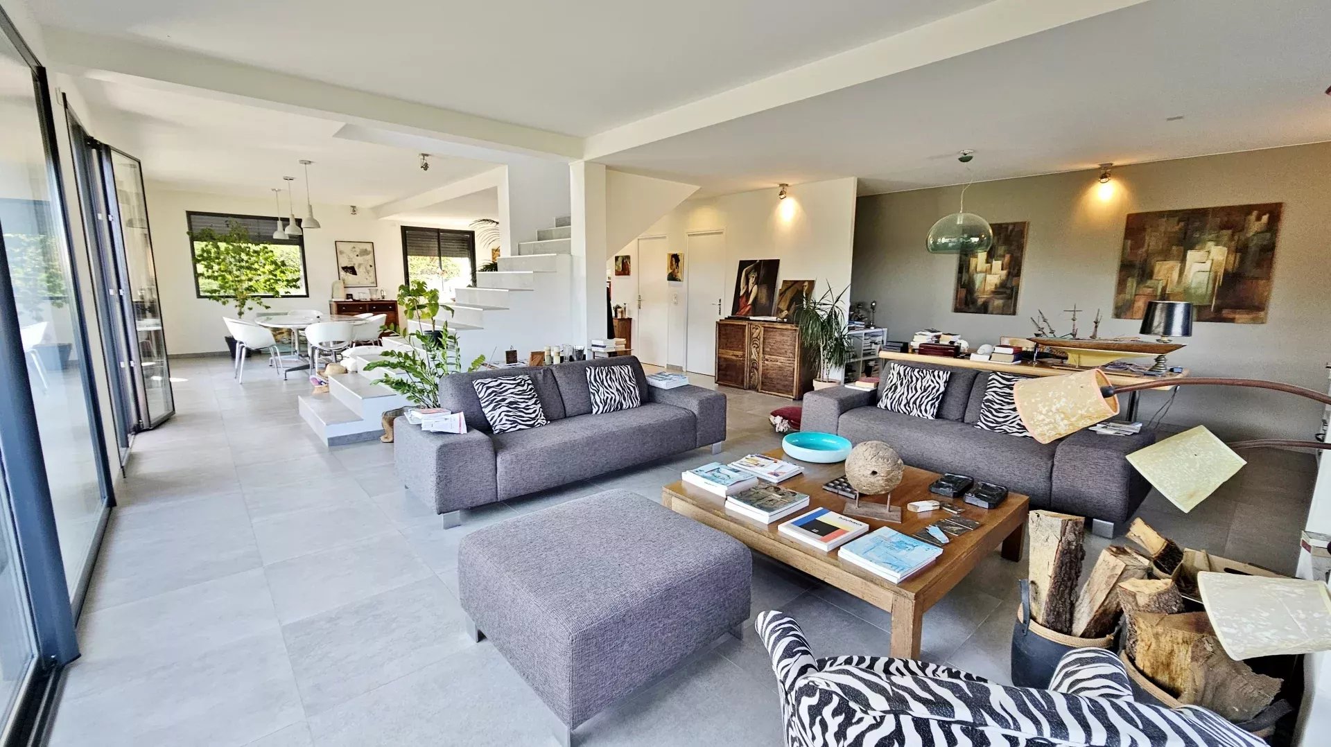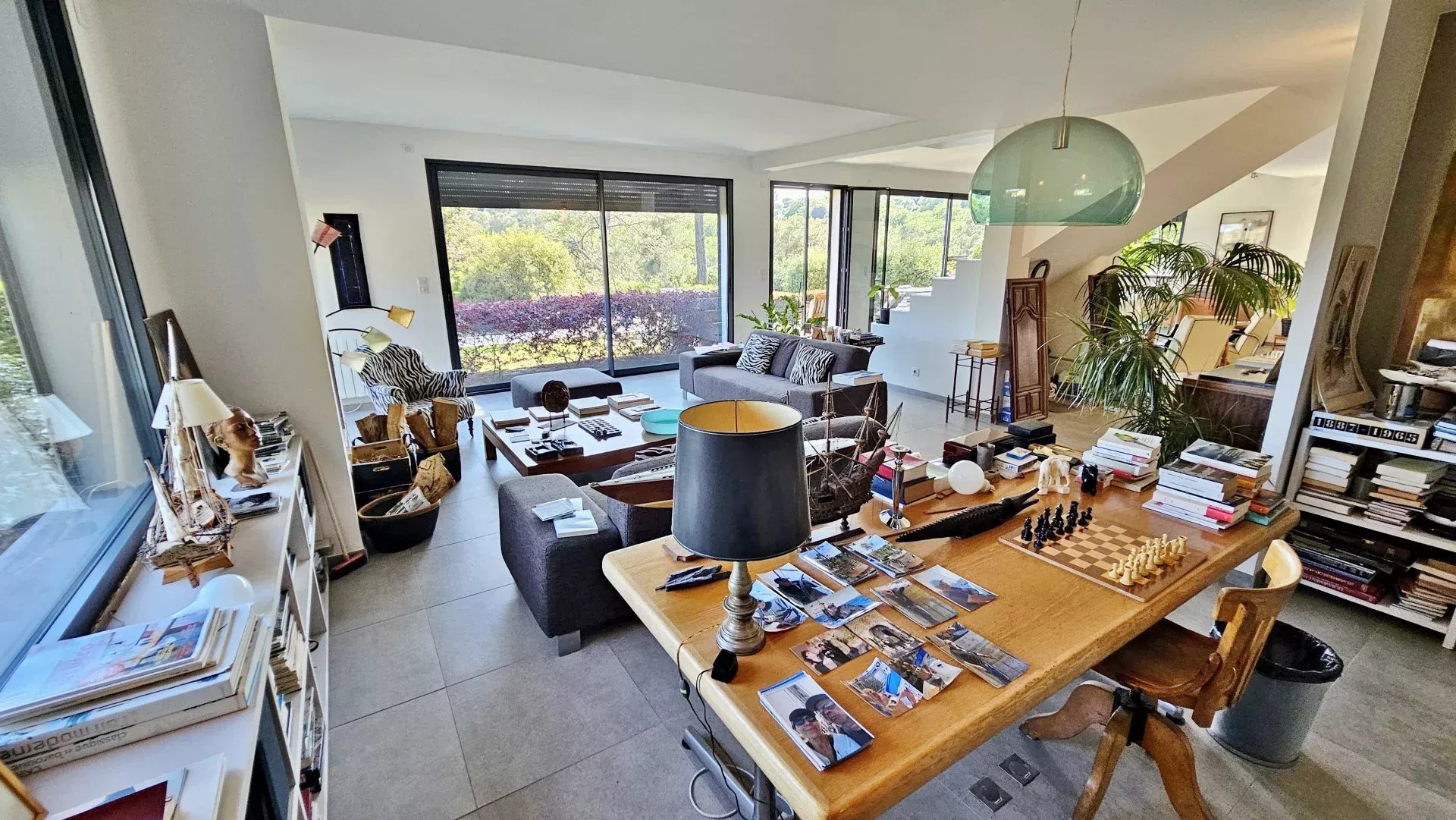 Located in a peaceful and green setting in the South of France, this contemporary villa impresses with its clean lines and exceptional natural light, thanks to large sliding glass doors throughout.