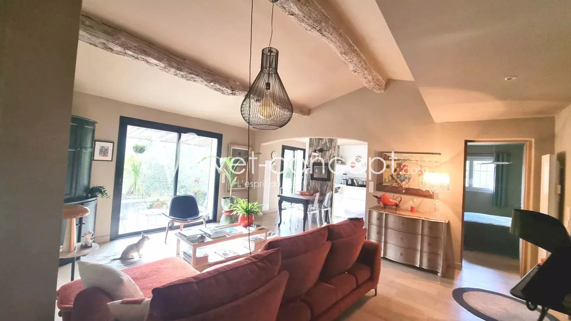 This pretty single-storey villa is in perfect condition, and exudes a warm, cosy atmosphere! The main living area comprises a lovely living room opening onto a south-facing terrace, a quality open-plan kitchen, 2 bedrooms, one with its own bathroom and the other with its own shower room. There's a 2-room outbuilding ideal for entertaining friends or family, or for rental income. 1850 m² of wooded grounds with swimming pool. Possibility of extension.