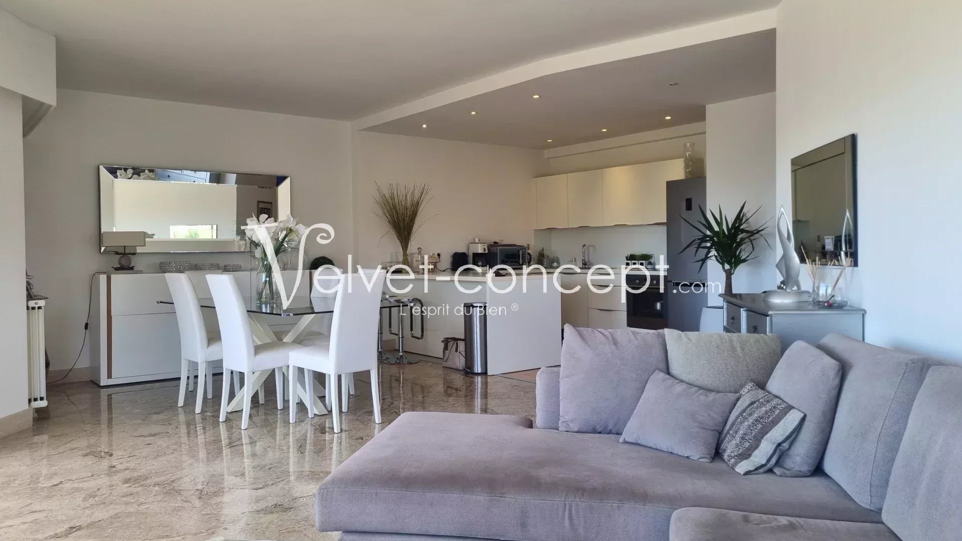 Situé dans le quartier prisé des Bréguières dans une résidence de standing sécurisée avec gardien, piscine chauffée, magnifique solarium, terrain de tennis, de pétanque. Je vous propose cet élégant appartement de 3 pièces d'environ 90 M² avec des prestations modernes en parfait état, se composant d'un lumineux et spacieux séjour/salon avec cuisine équipée ouverte d'environ 49 M², de deux belles chambres avec placards, d'une salle de bains et une salle de douche, wc; Toutes les pièces avec baies vitrées donnent sur la terrasse avec vue mer et colline. Ce cadre de vie est parfait pour ceux qui recherchent tranquilité et commodité à la fois.