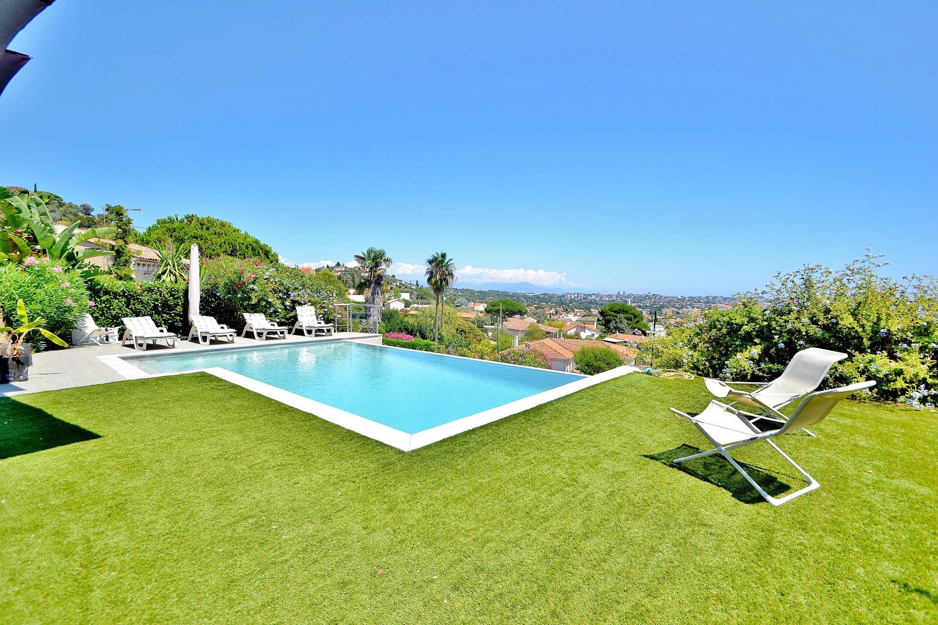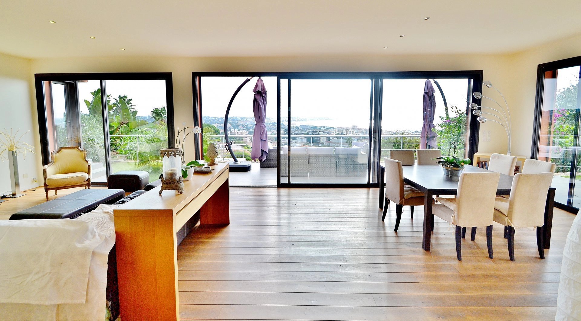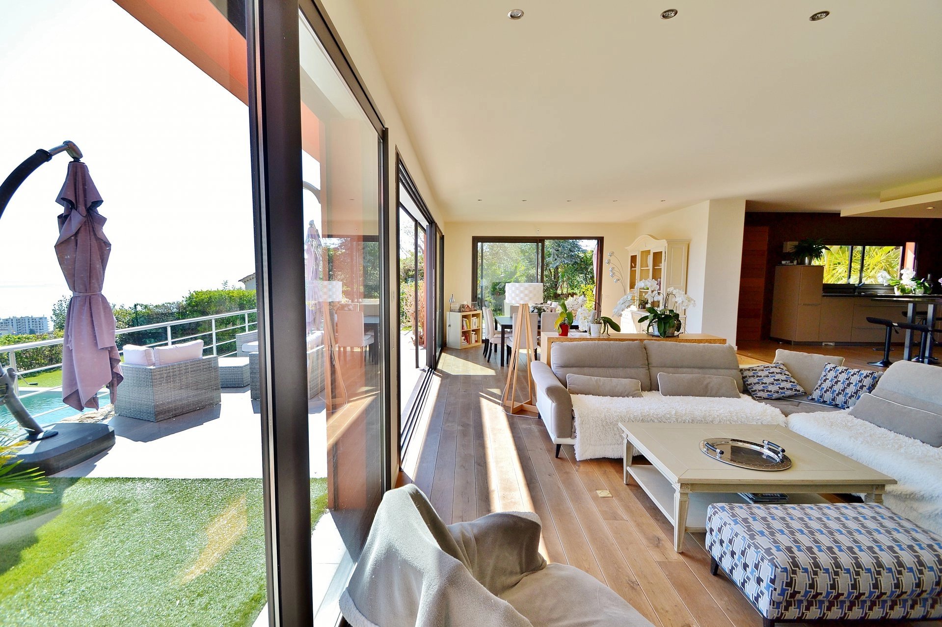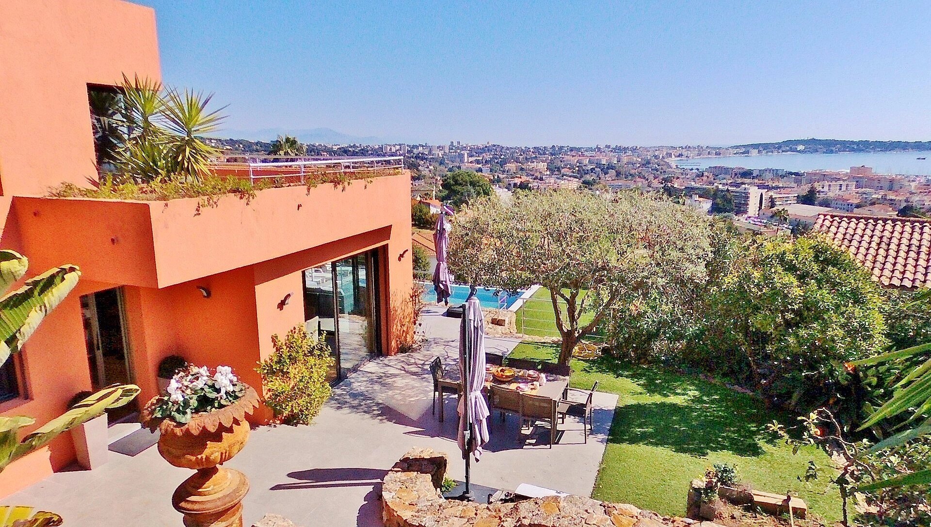 Exclusivité - Superbe Californienne récente de 4 chambres plus bureau (dont 1 master avec dressing et salle de bain), VUE PANORAMIQUE MER à 200°. Prestations haut de gamme, cuisine US et vaste séjour donnant sur la vue et les terrasses. Jardin paysagé de 1.600m² avec piscine à débordement. Au calme, pas de vis-à-vis.