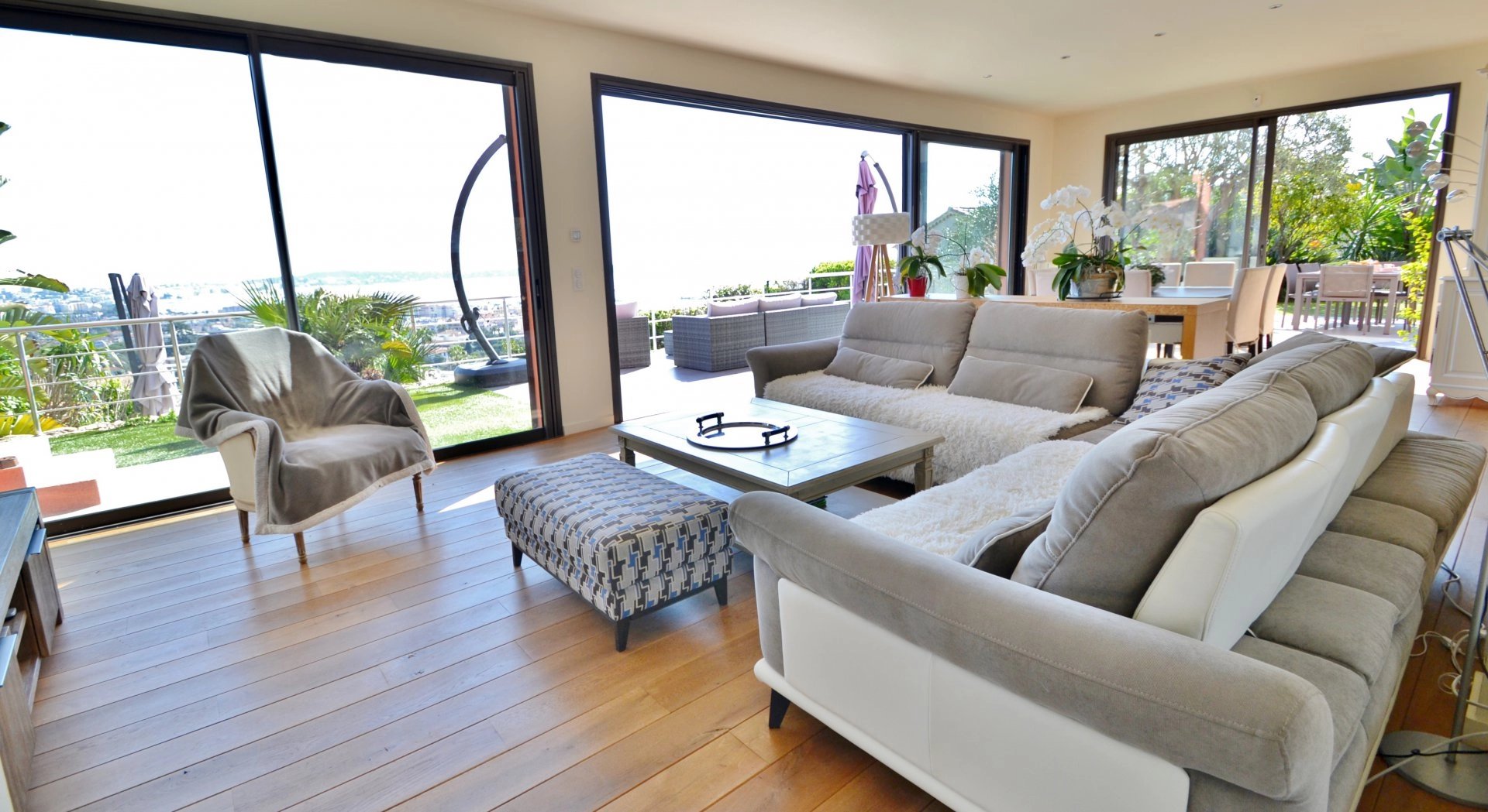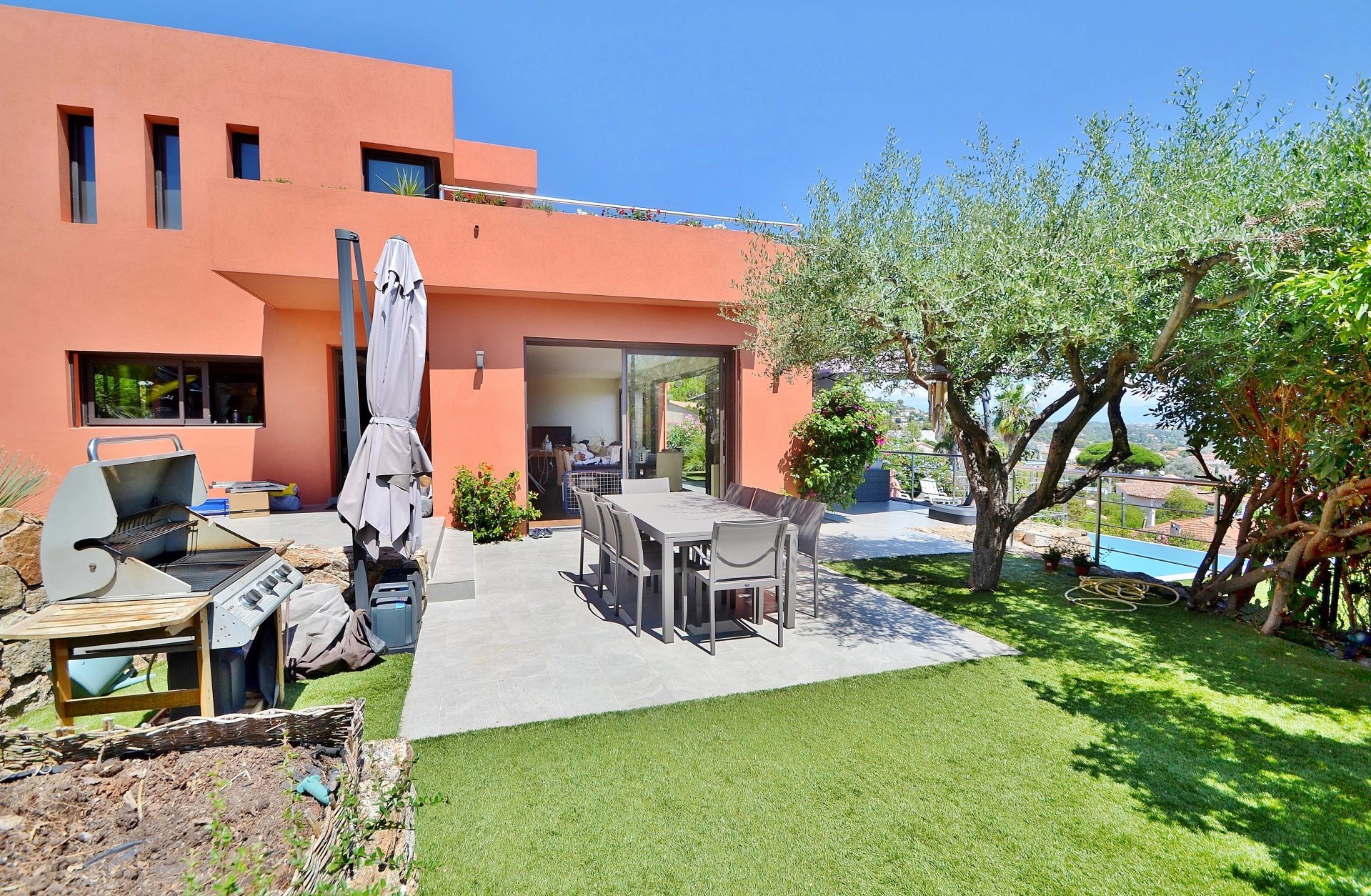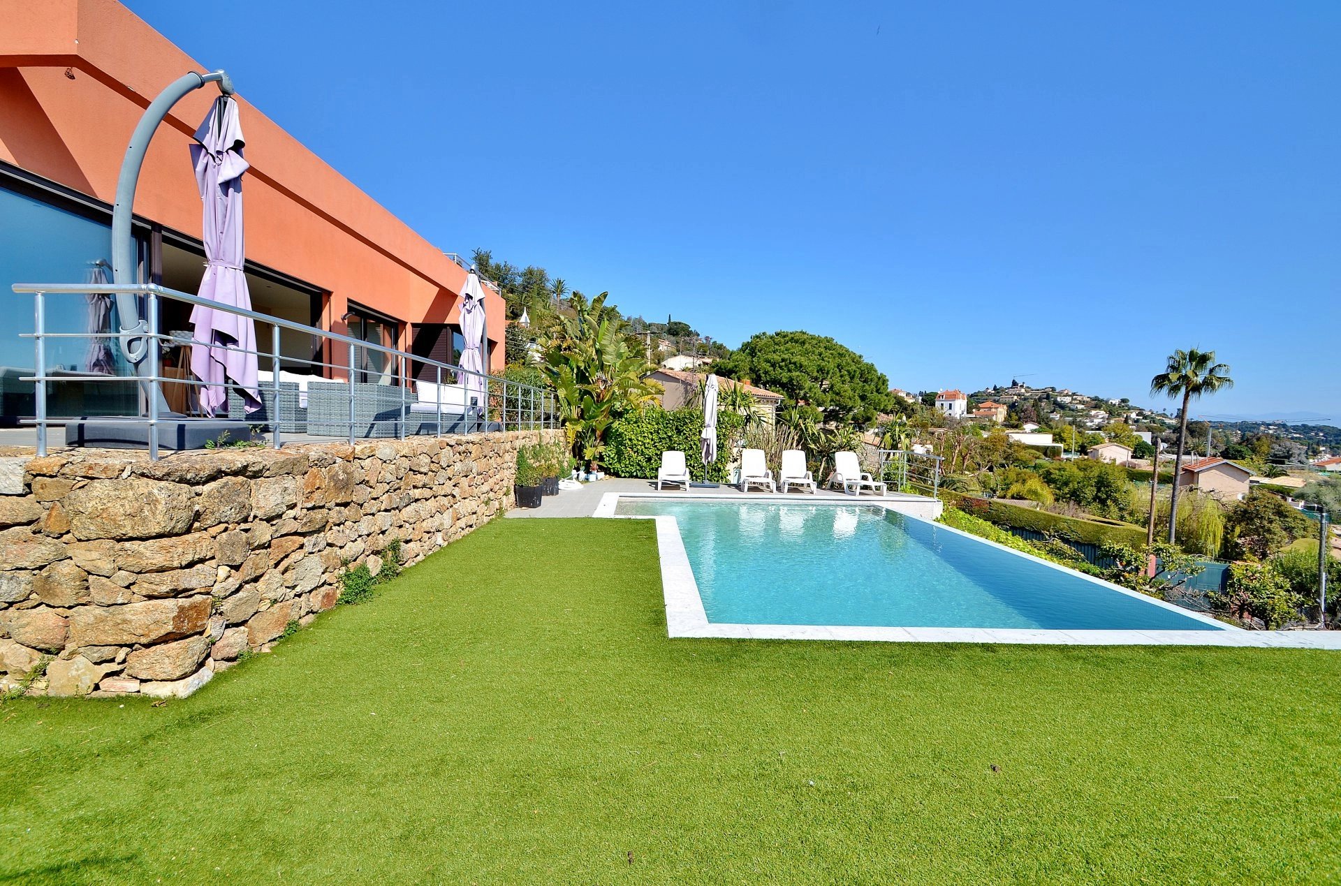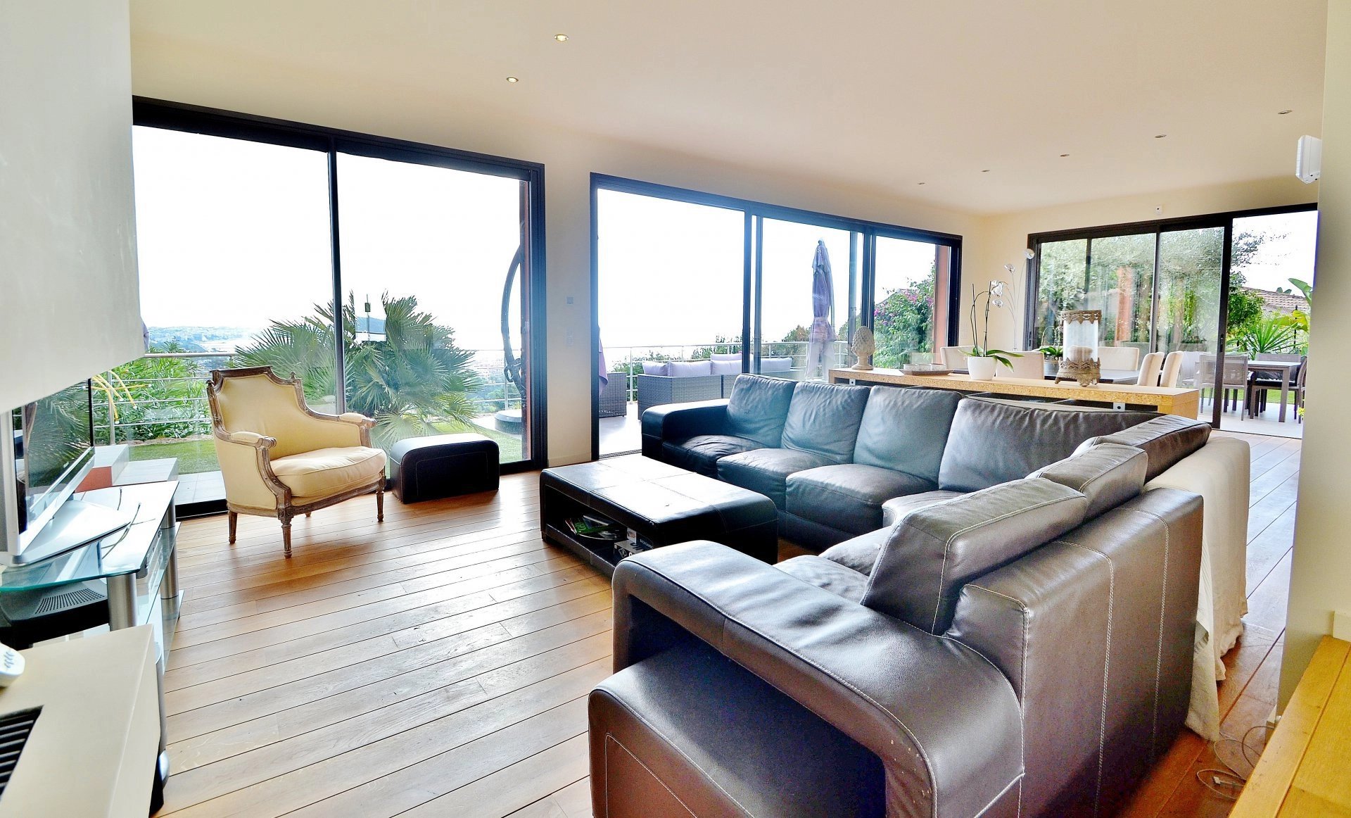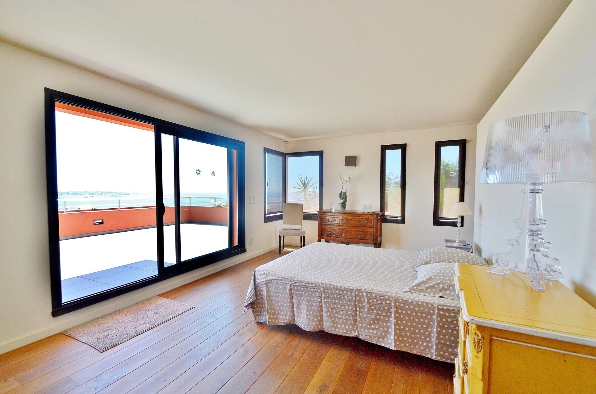 Exclusivité - Superbe Californienne récente de 4 chambres plus bureau (dont 1 master avec dressing et salle de bain), VUE PANORAMIQUE MER à 200°. Prestations haut de gamme, cuisine US et vaste séjour donnant sur la vue et les terrasses. Jardin paysagé de 1.600m² avec piscine à débordement. Au calme, pas de vis-à-vis.