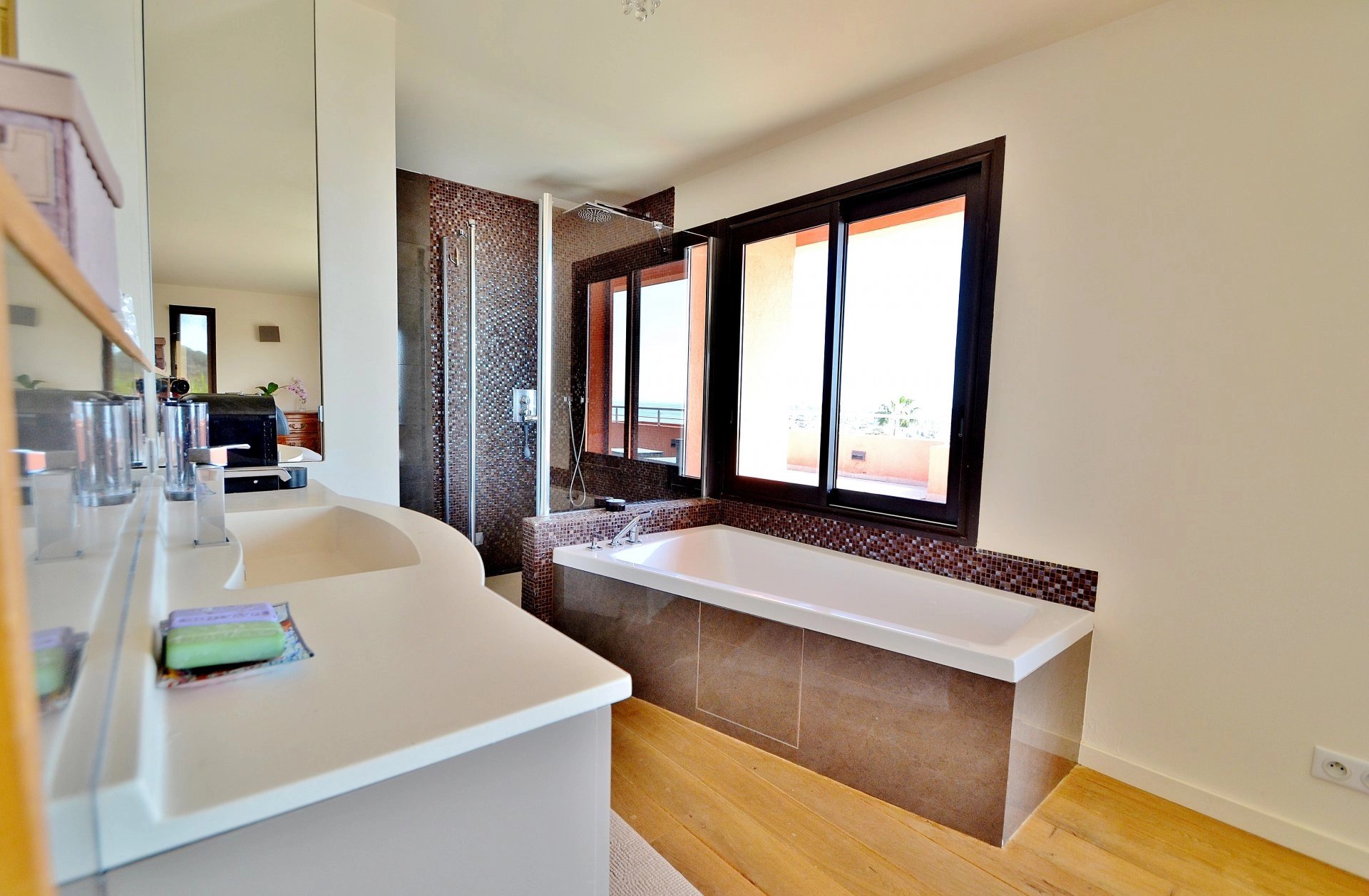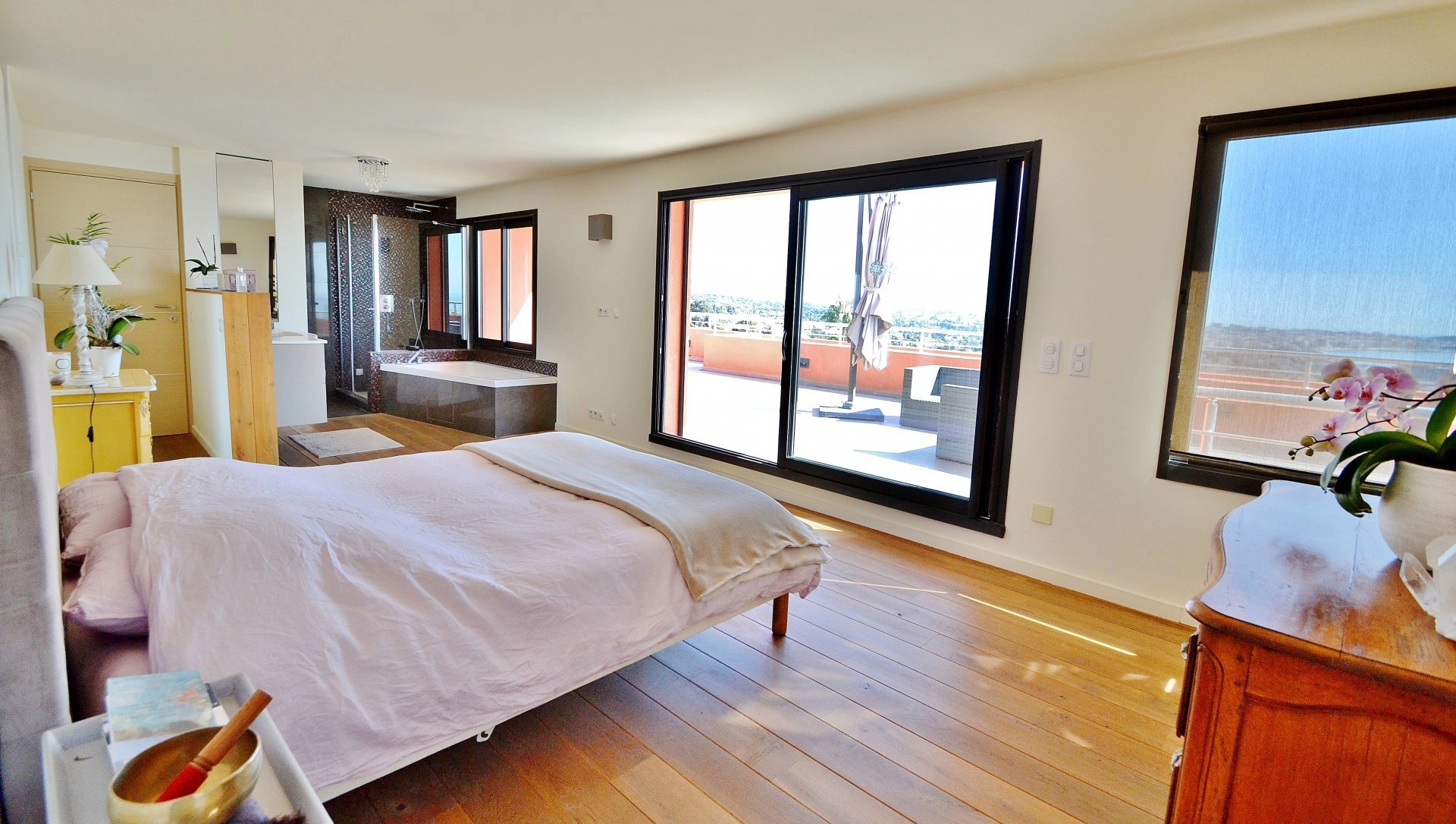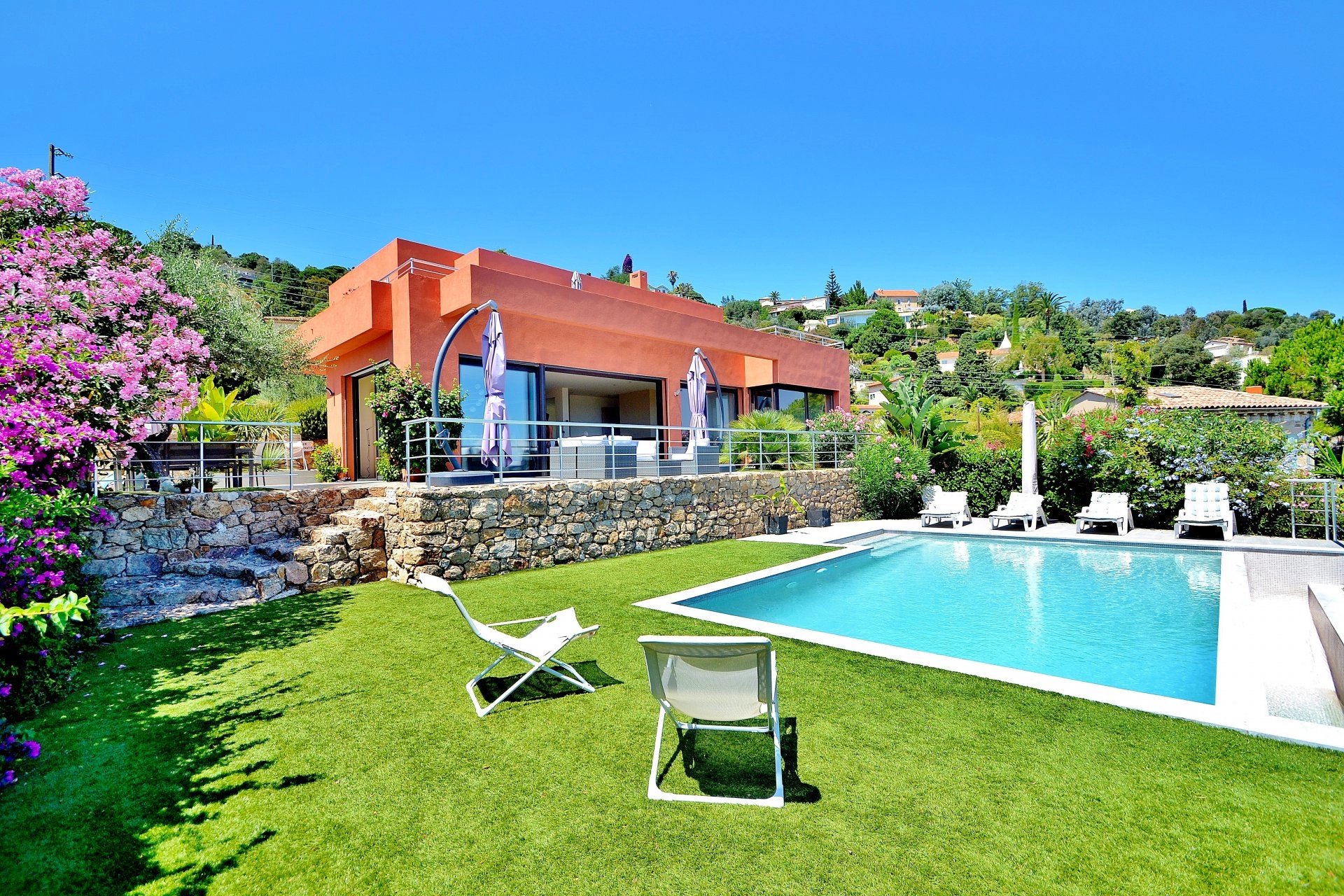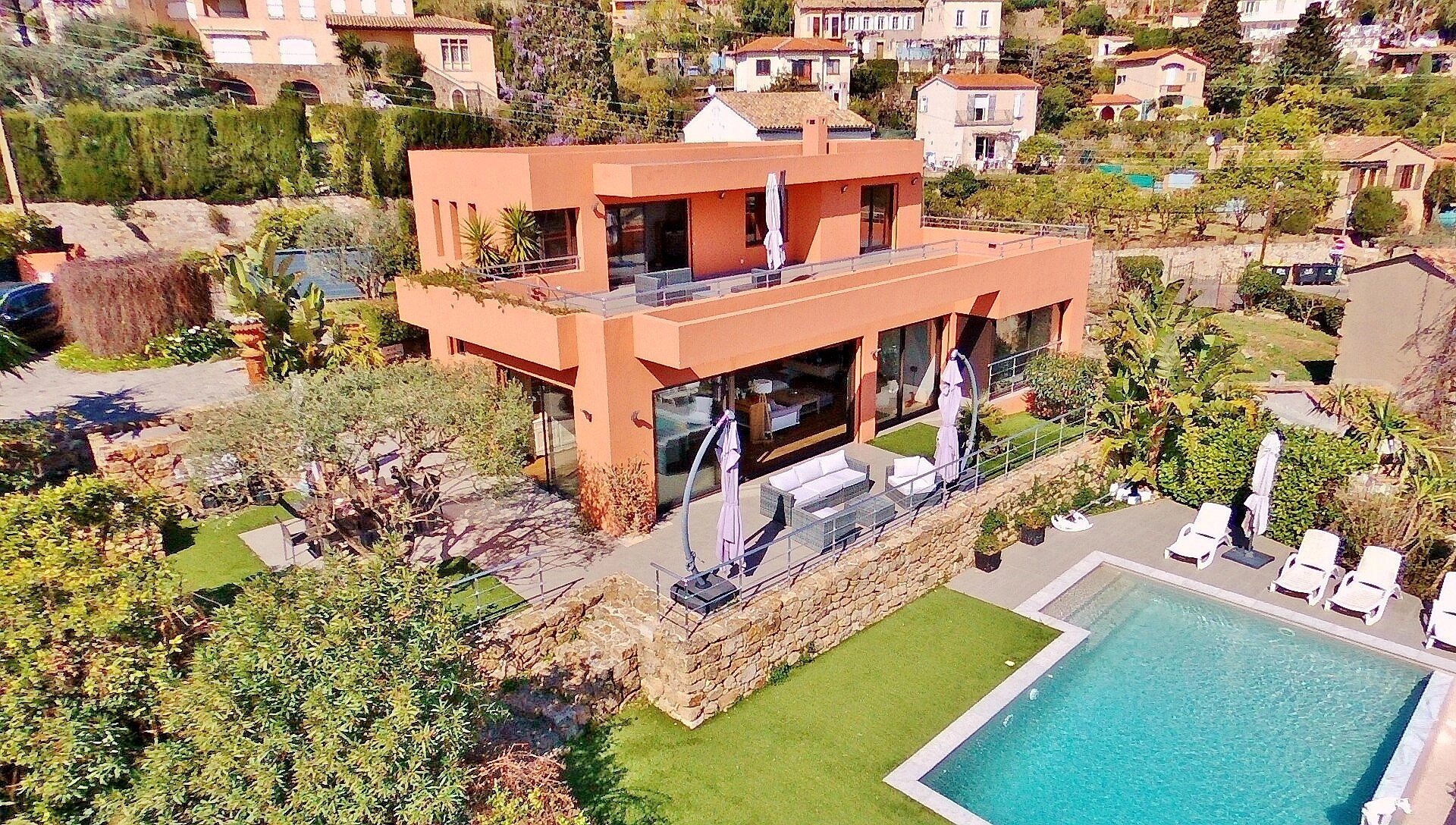 Exclusivité - Superbe Californienne récente de 4 chambres plus bureau (dont 1 master avec dressing et salle de bain), VUE PANORAMIQUE MER à 200°. Prestations haut de gamme, cuisine US et vaste séjour donnant sur la vue et les terrasses. Jardin paysagé de 1.600m² avec piscine à débordement. Au calme, pas de vis-à-vis.