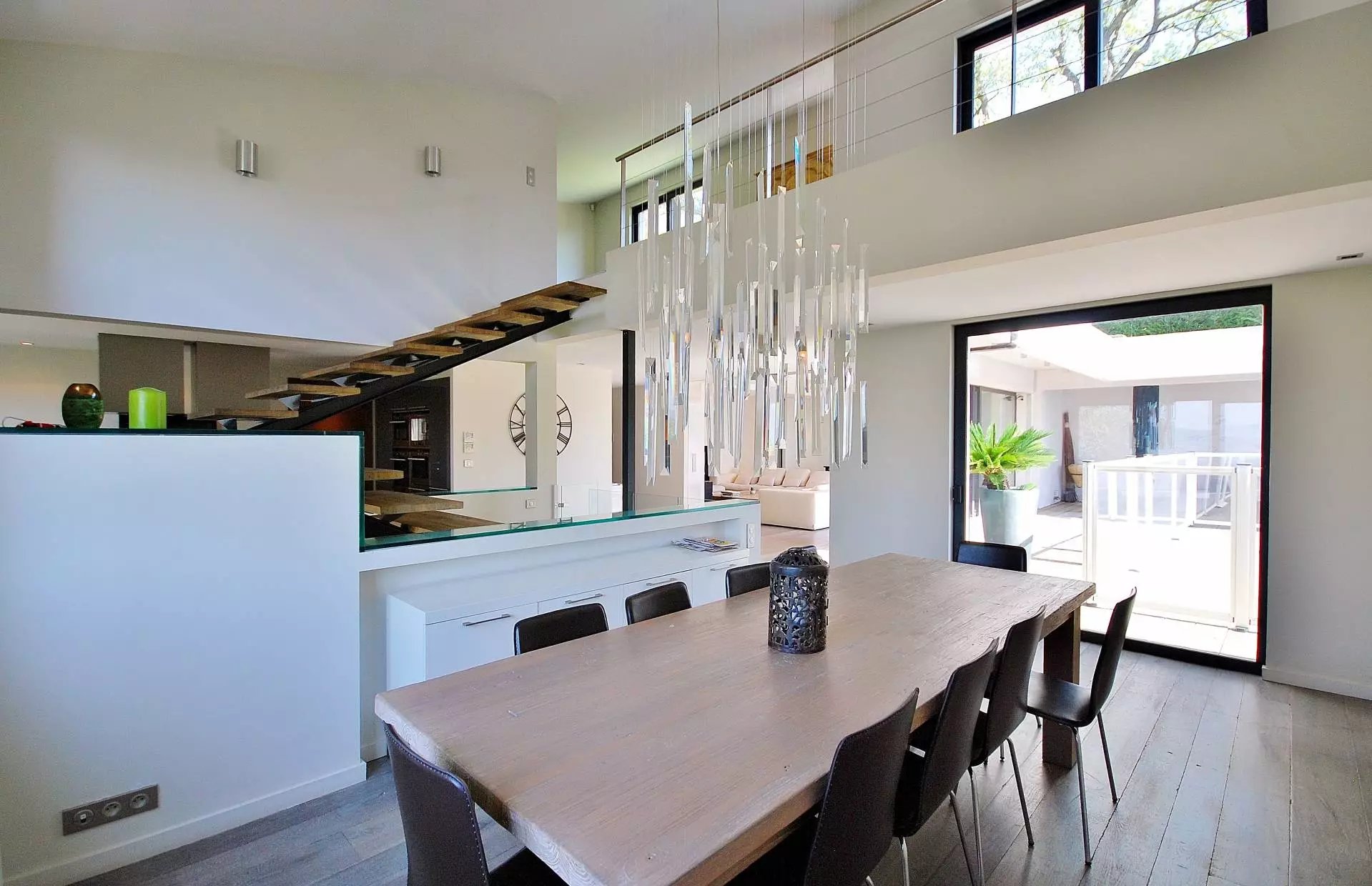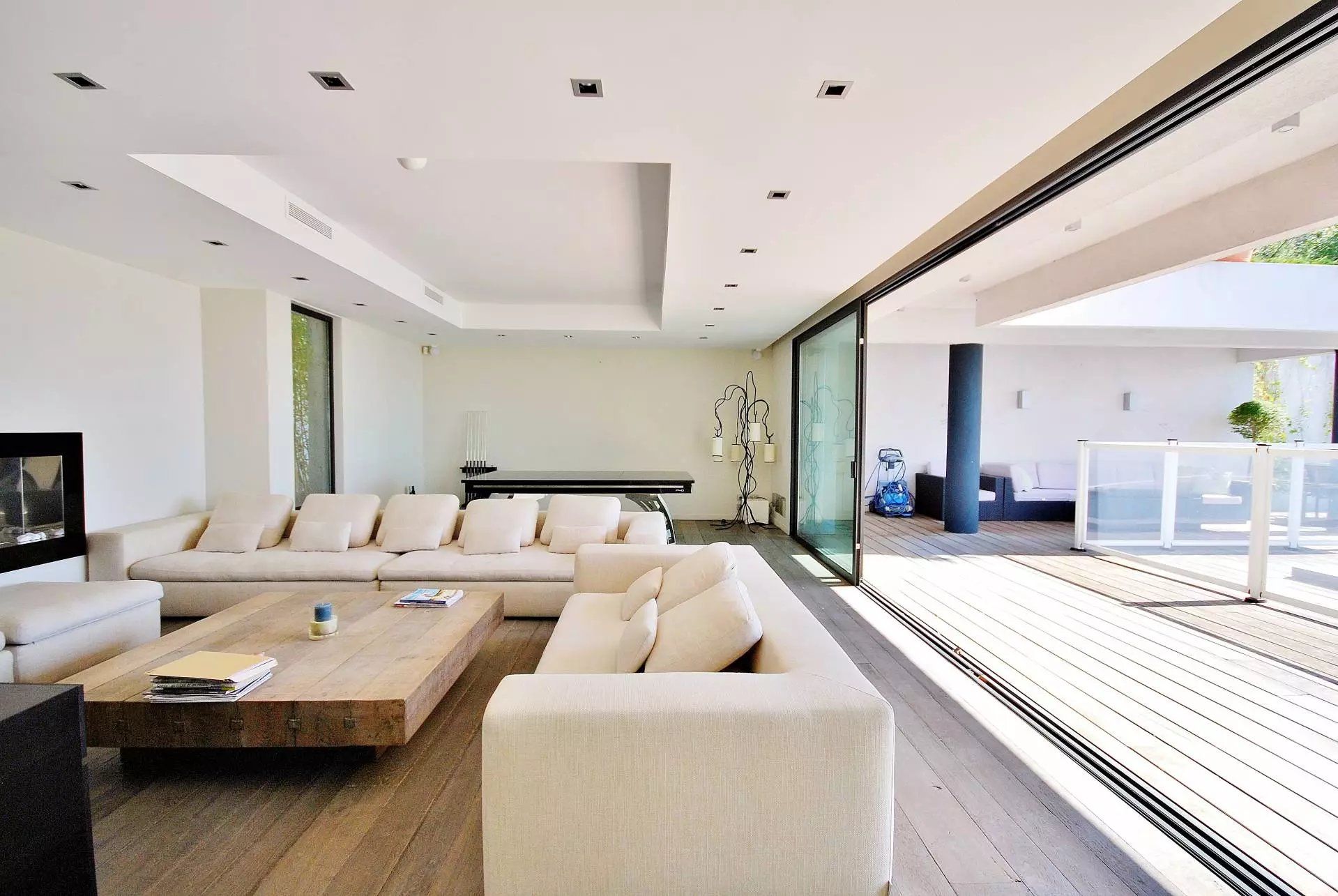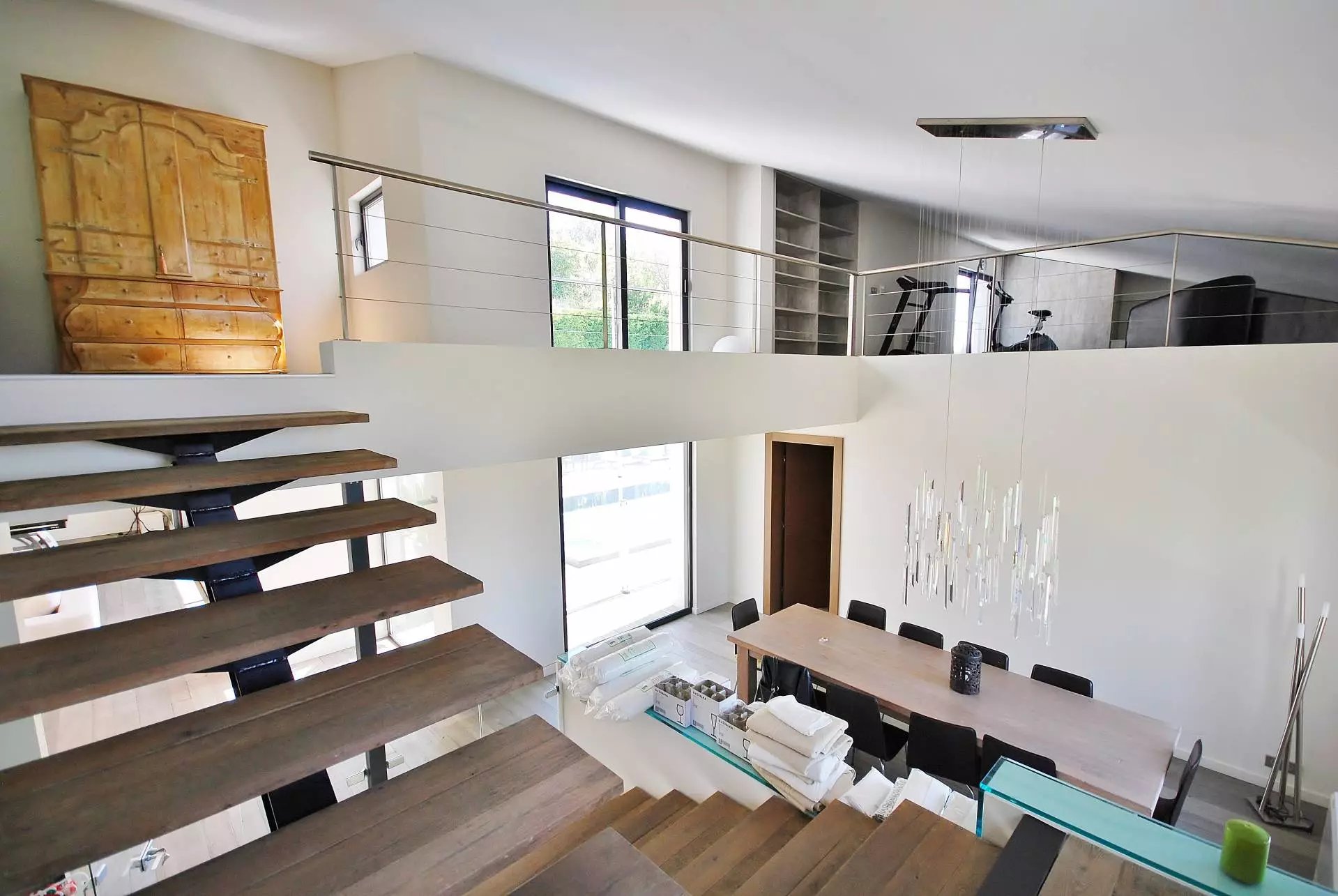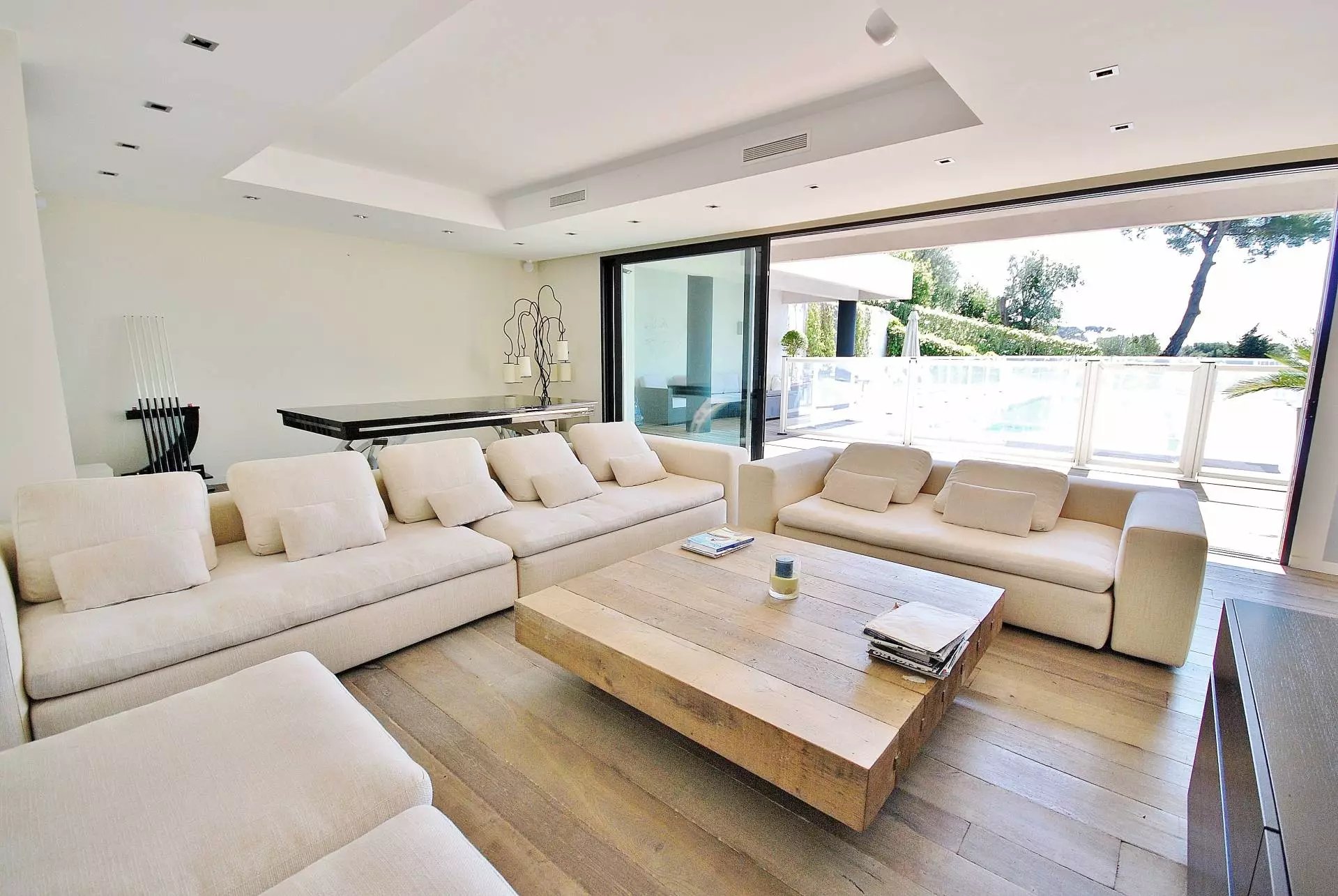 Domaine prestigieux, position dominante avec vue de l'Esterel aux iles de Lerins. Villa contemporaine de 280m² aux prestation modernes et raffinées. Séjour ouvert sur terrasse et piscine, cuisine, salle à manger, chambre de maitre de plain pied avec dressing. Salle de jeu et salle de sport à l'étage. 3 chambres en suite en rez de jardin. Garage. Superbe piscine mirroir. Buanderie, cave, celier.